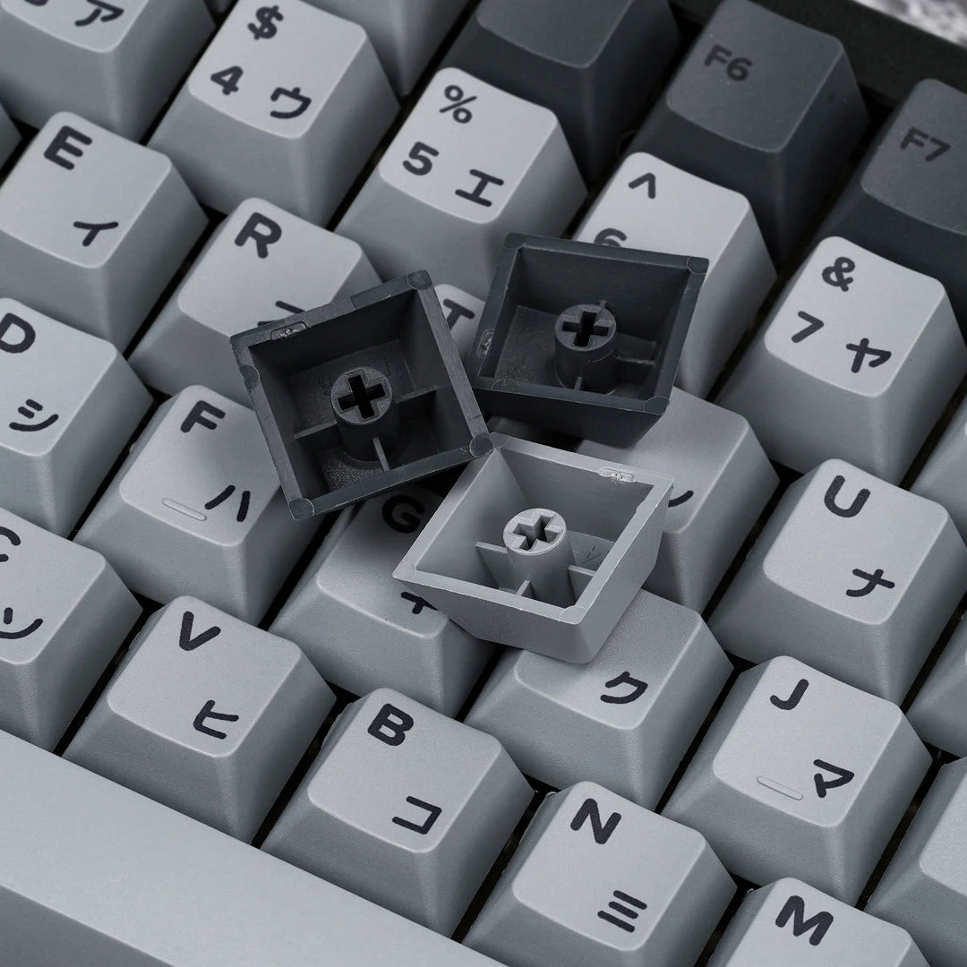 Fully Assembled keyboard with Cement Grey Japanese PBT Keycaps Collection